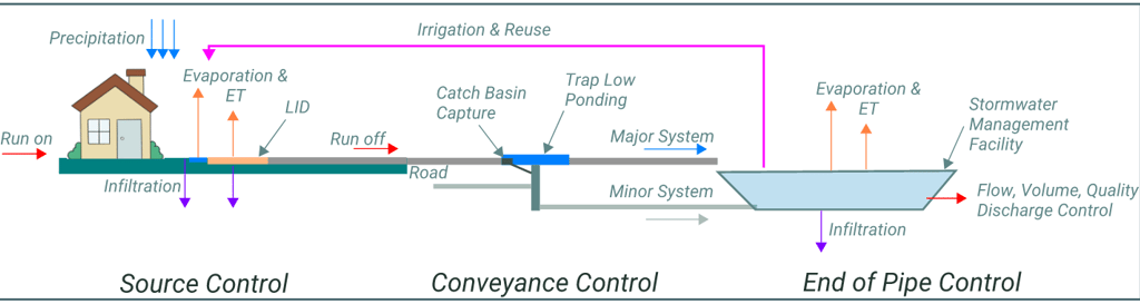 Source control focuses on minimizing stormwater runoff where it begins—at homes, streets, parks, and other developed areas. By addressing runoff at the source, the overall burden on drainage systems is reduced, making downstream management easier and more effective.